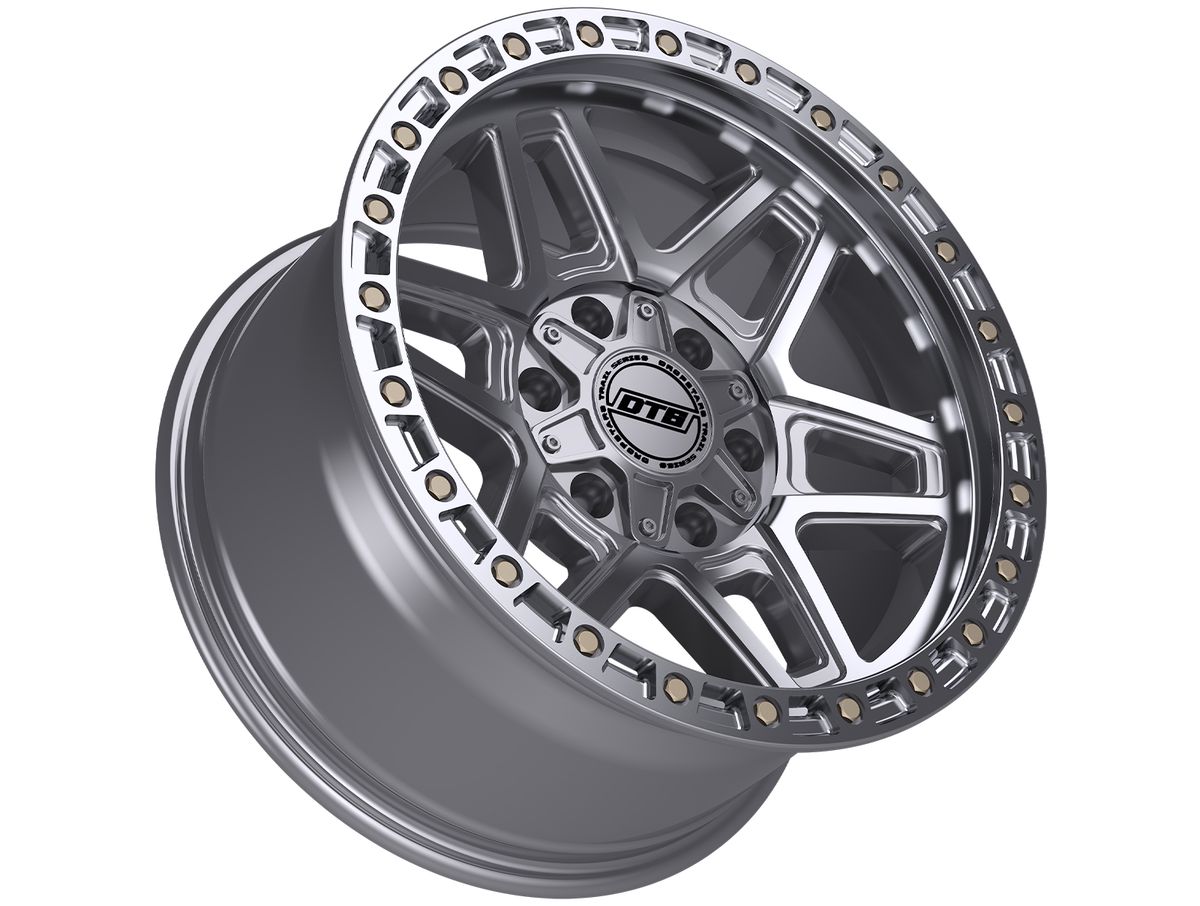 The wheel is covered in a silver finish with a machined face that is enhanced by the machined simulated beadlock. The center cap is adorned with the Dropstars logo to complete the look.