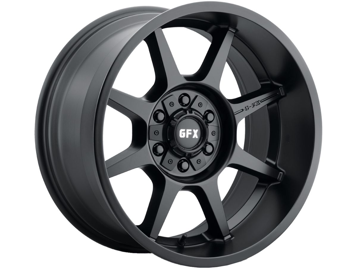 The wheel is covered in a matte black finish that is enhanced by the debossed logo in the spoke. The center cap is adorned with the G-FX logo to complete the look.