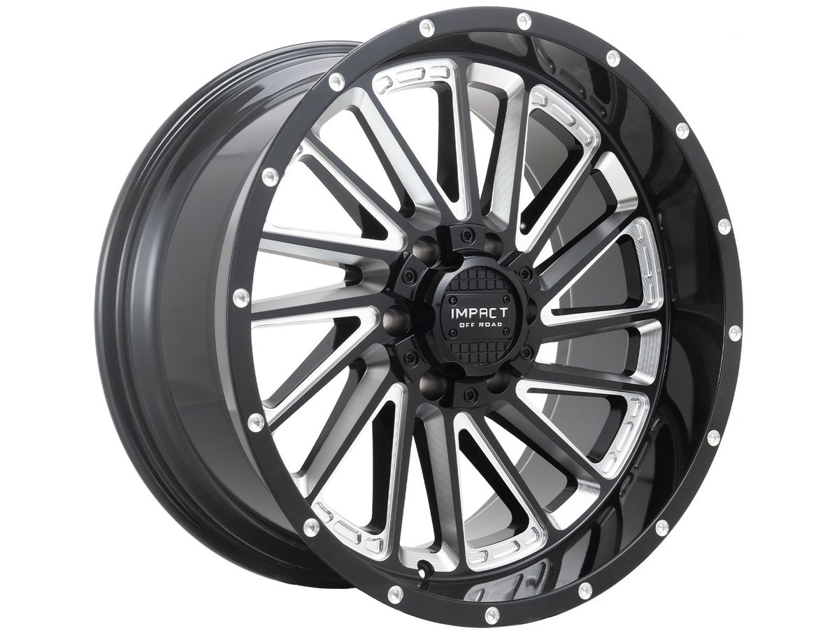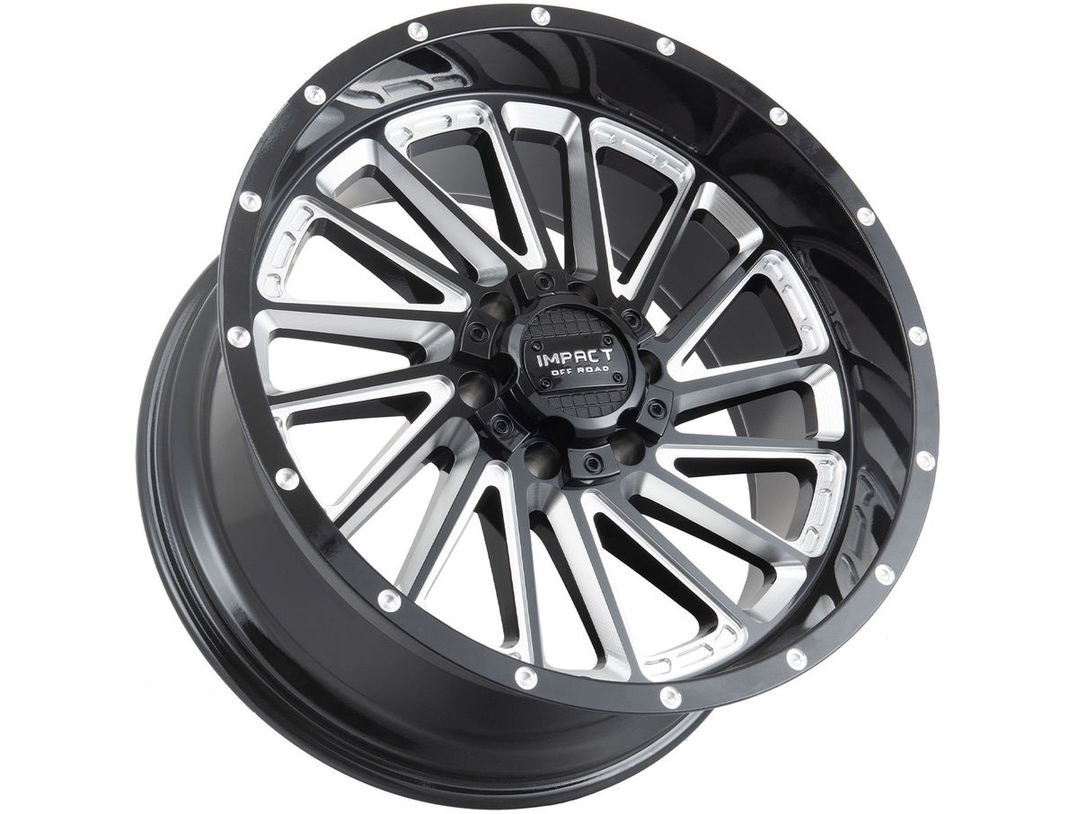 Impact Off-Road Milled Gloss Black 903 Wheels feature a directional design face with spokes that blend cleanly into the barrel to portray aggressive stance and offset. Impact Off-Road is known for specializing in large diameters and deep lip styles, and the 903 puts those features on display.