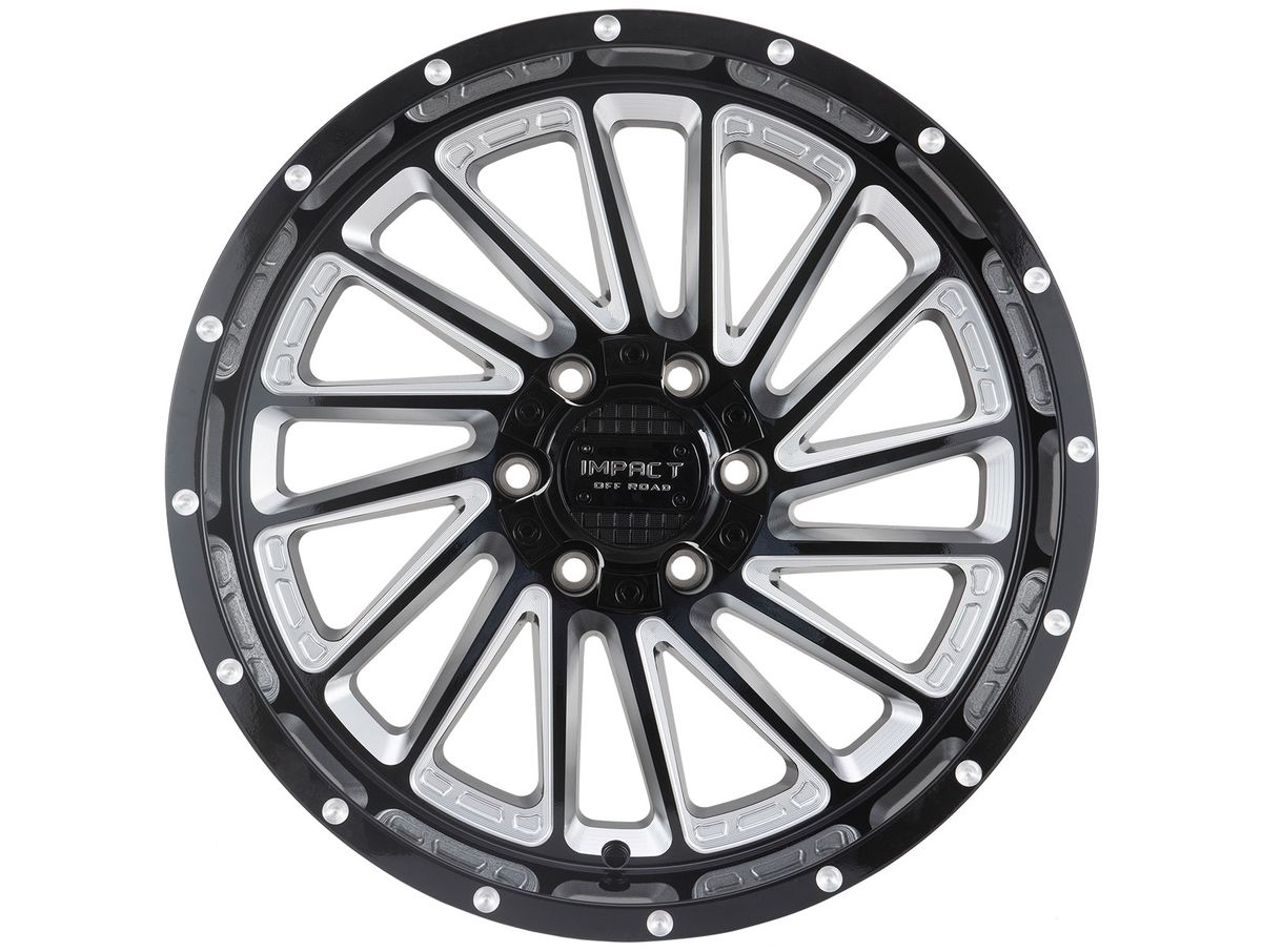 Each spoke features milled accents that enhance the face of the wheel. The wheel is then covered in a gloss black finish that is offset with spot milled accents around the outer edge. The center cap is adorned with the Impact Off-Road logo to complete the look.