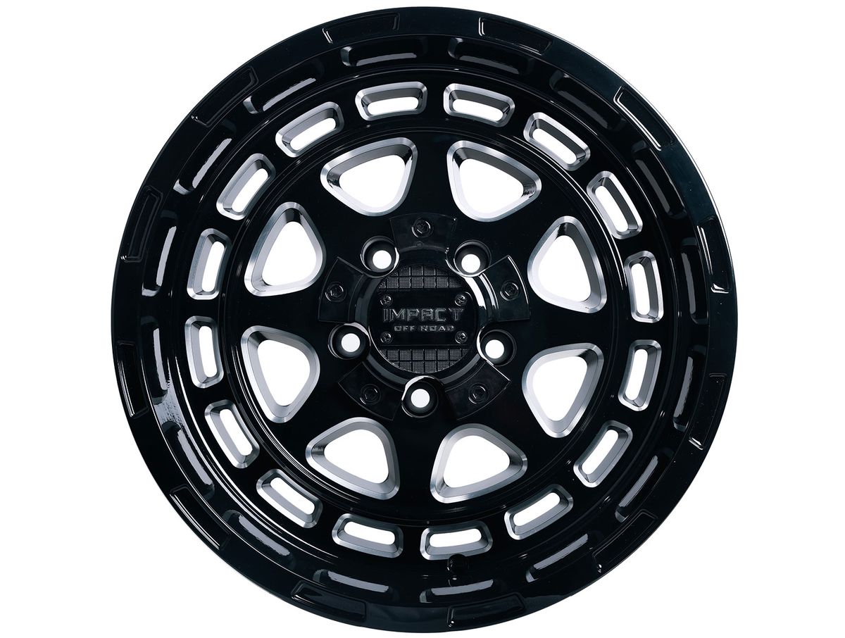 Each wheel is constructed from a durable, one-piece cast aluminum. They are then covered in a gloss black finish that is offset with the groved holes around the outer edge. The center cap is adorned with the Impact Off-Road logo to complete the look.