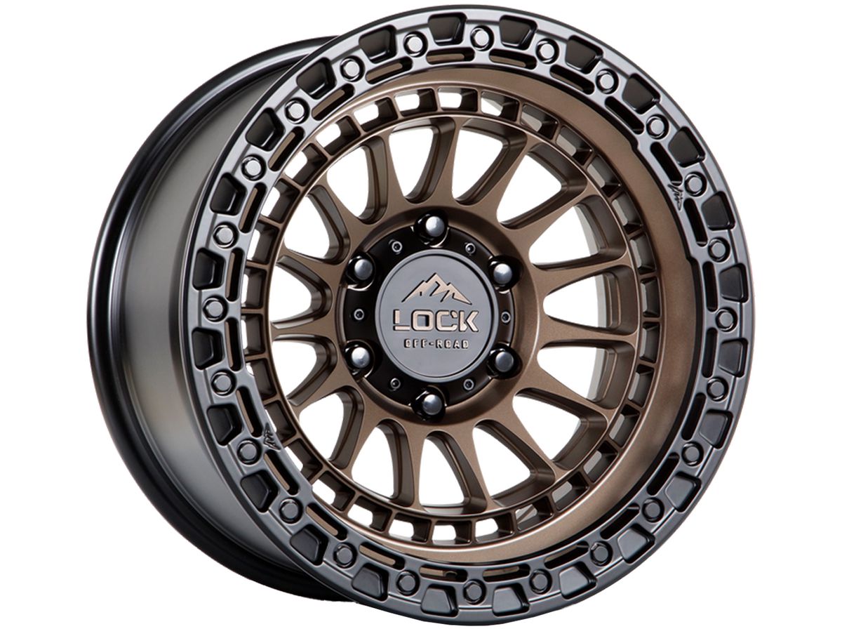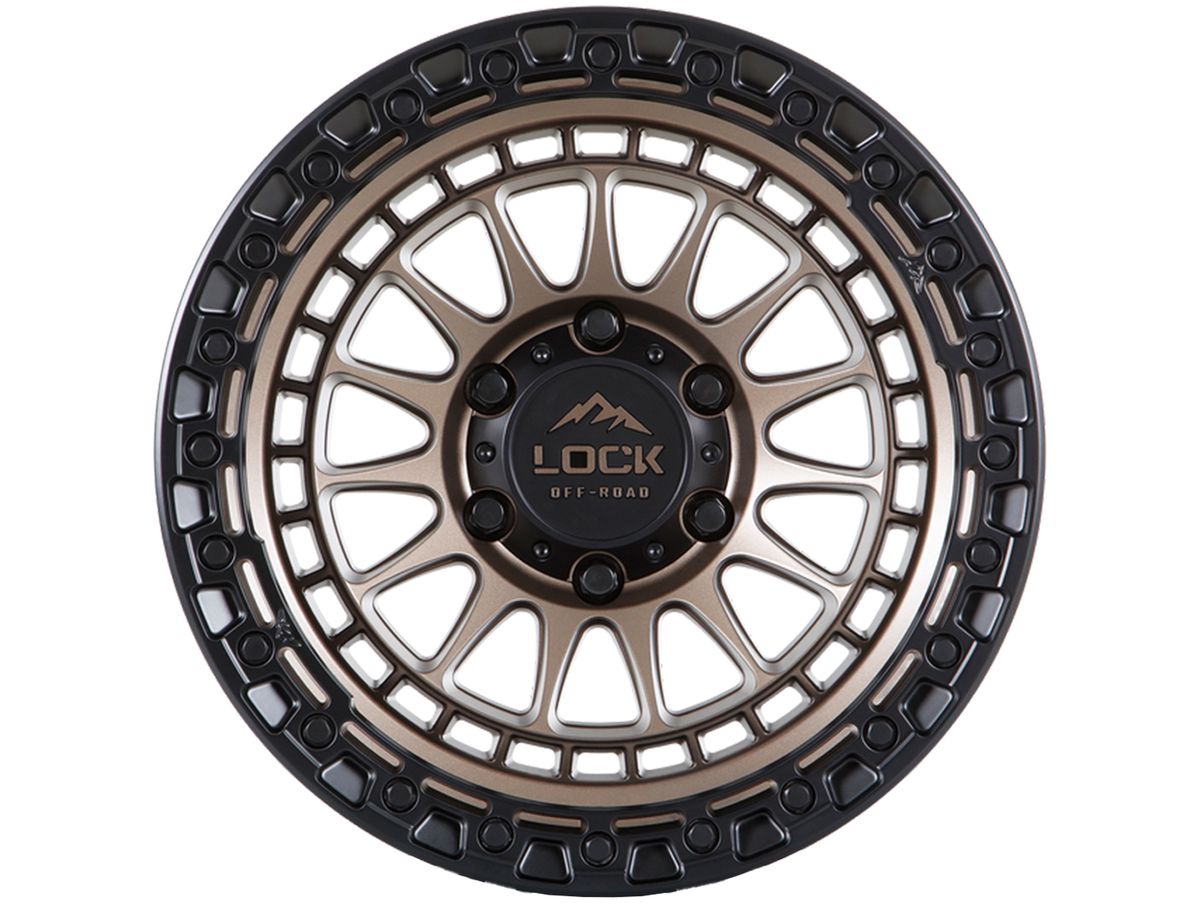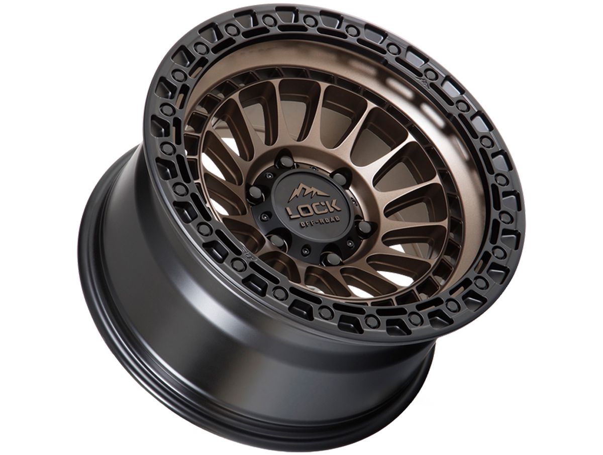 The wheel is covered in a matte bronze finish that is enhanced by the black simulated beadlock ring. The center cap is also adorned with the Lock Off-Road logo to complete the look.