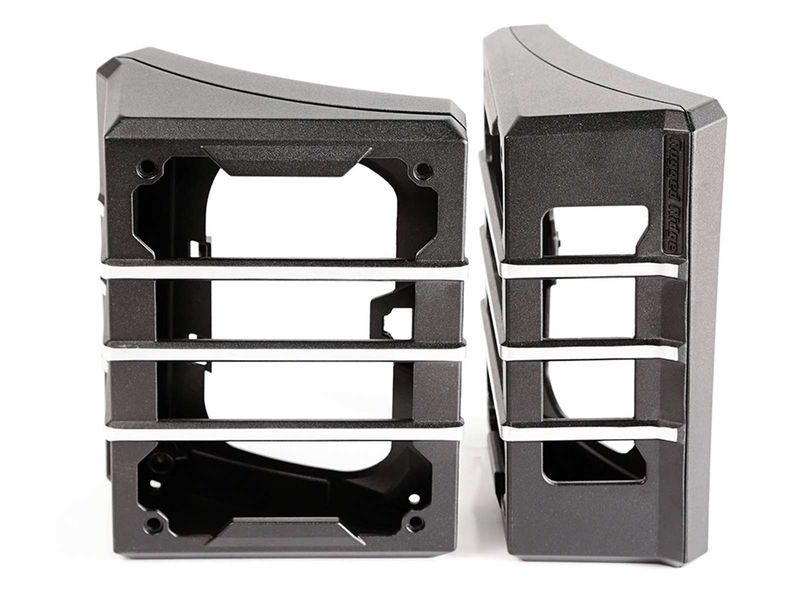 Are you looking for the perfect complement for the rear of your 07-17 JK? Look no further than the Rugged Ridge Elite Series Tail Light Guard. A stunning blend of black satin-textured powder coat over cast aluminum with brushed finishing details delivers unrivaled looks and equally impressive protection. Simple bolt-on installation with the included socket-head hardware and cast logo gives a smooth, finished appearance that looks great while the ingenious 2-piece design protects your tail lights like no other. Patent No. D802,810