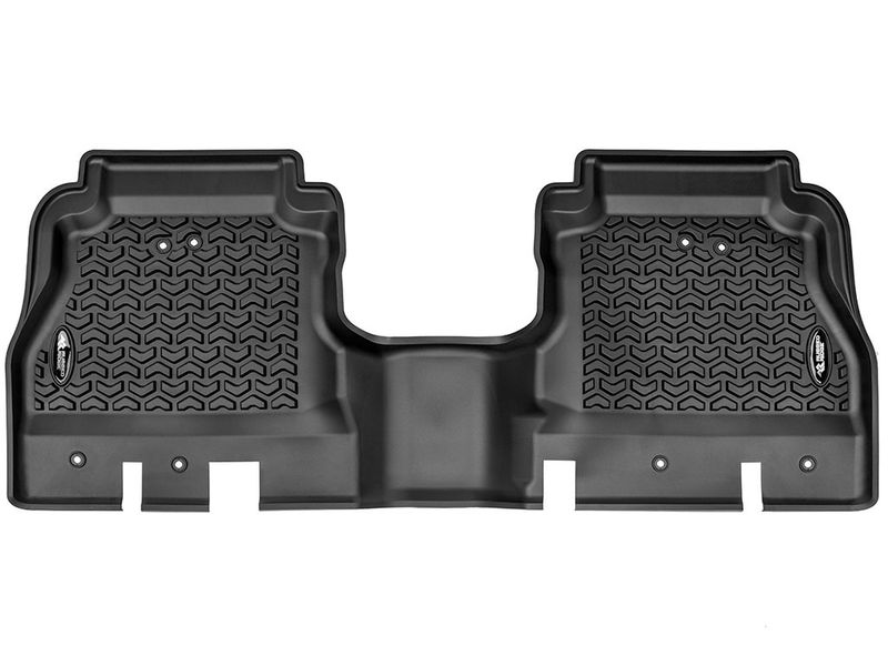 Need an affordable solution to keep the cabin floors of your Jeep looking factory fresh? Try Rugged Ridge's All Terrain Floor Liners! Made of a durable OE-quality thermoplastic material that can withstand the rigor of daily abuse, each liner is perfectly contoured to your vehicle's floor for precise secure fitment (floor hook attachment where applicable). The raised lip captures all spills, water, and debris keeping your interior pristine. Features a chevron shape patented deep tread technology.
