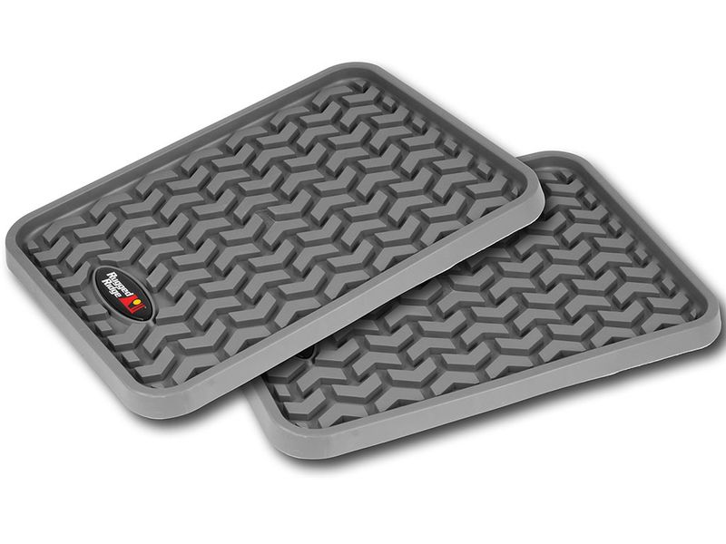 Need an affordable solution to keep the cabin floors of your Jeep looking factory fresh? Try Rugged Ridge's All Terrain Floor Liners! Made of a durable OE-quality thermoplastic material that can withstand the rigor of daily abuse, each liner is perfectly contoured to your vehicle's floor for precise secure fitment (floor hook attachment where applicable). The raised lip captures all spills, water, and debris keeping your interior pristine. Features a chevron shape patented deep tread technology.