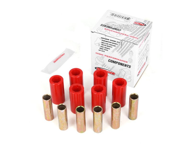 This red leaf spring bushing kit fits the front or rear leaf springs on 55-75 Jeep CJ5 and CJ6s. One installed, these bushings provide better handling and control of your Wrangler for a better overall performance. They are made of polyurethane which is a stronger replacement than rubber and lasts for as long as you need it!