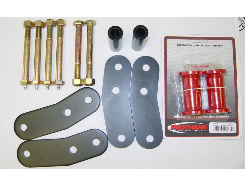 This pair of steel heavy-duty, easily greased rear leaf spring shackles from Rugged Ridge adds 1 inch of lift for your YJ. Direct fit with a bolt on application. No drilling required. Red bushings included.