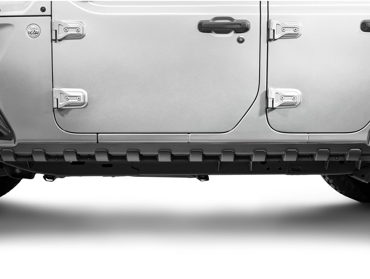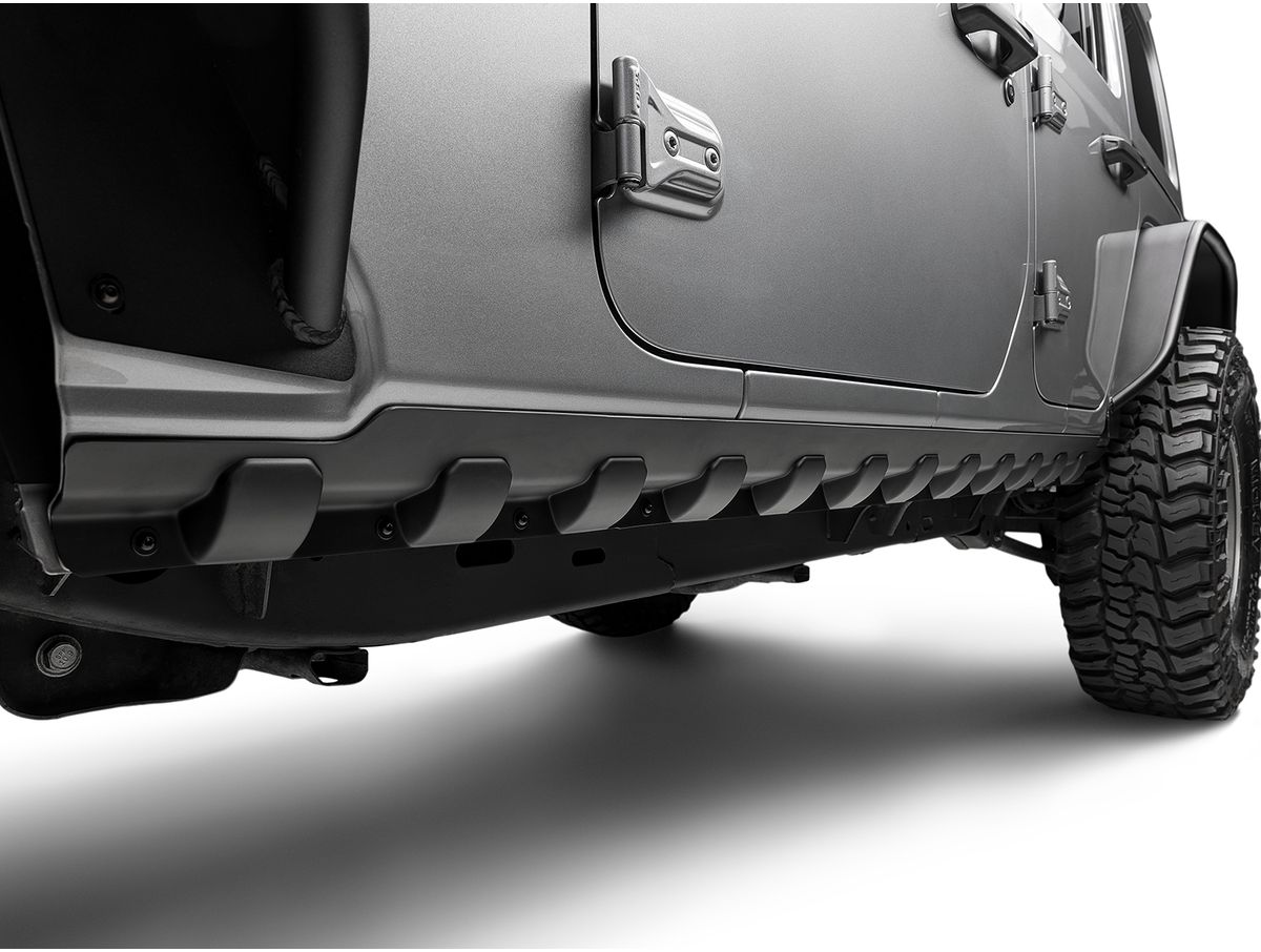 The new Rugged Ridge Body Armor rocker guard kits are constructed from impact resistant polycarbonate, protecting the factory Jeep rocker panels from scratches and scrapes with trail obstacles or road debris, while allowing you to cover up your pinch weld for an off-road look. Mounted using Rugged Ridge-supplied automotive grade 3M acrylic tape, these rocker panels guards are an easy way to customize your ride. In addition, matching rear corner guards (PN 11751.09 and 11751.07) can also be installed for maximum protection.