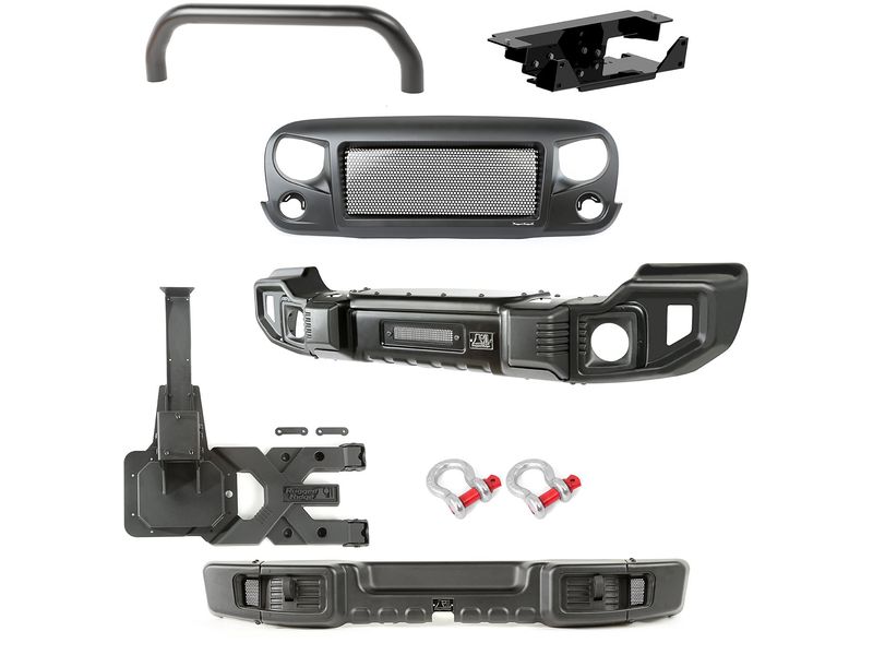 All Rugged Ridge bumpers come complete with installation instructions. Because of the size and weight of these bumpers, it is recommended that you have help with the lifting of the front bumper when mounting to avoid injury or damage to bumper and vehicle. However, they come with a no-drill, bolt on mount kit for easy installation. Recheck all hardware after the first couple hundred miles. It is advised to inspect the bumper and hardware periodically. For additional information, please give us a call!