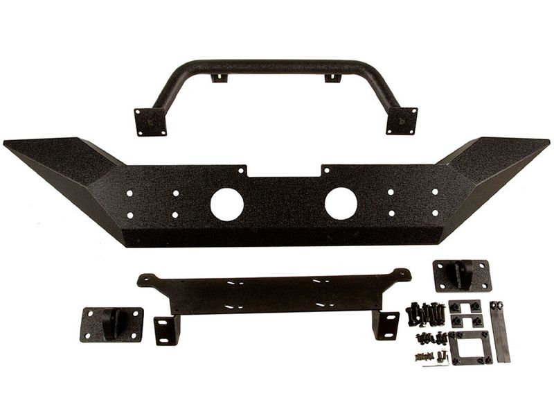 Rugged Ridge engineered the Spartan Series Bumpers for the Jeep enthusiast that wants the look of a classic off-road style bumper without the extra weight and heavy price tag. The Spartan Front Bumpers one-piece design features ultra-aggressive high clearance bumper ends that angle cleanly upward to match the profile of factory fender flares relaying a look of symmetry, style and strength. Each bumper is built from high-strength plate steel that utilizes fold & weld construction for greater structural integrity, precise fit and a high-quality appearance. A tough black powder coat finish resists rust and corrosion, keeping your Spartan bumper looking and performing great for years to come. Each bumper incorporates a stand-alone winch plate as the central backbone for the bumper and includes D-shackle mounts and a tubular overrider to complete the package (D-rings not included). The Spartan Front Bumper is a direct bolt-on replacement for 2018-2019 Wrangler JL and Gladiator JT models and includes all the necessary hardware for a worry-free installation. The Spartan even utilizes the factory Sahara or Sport fog lights for a finished look without any added expense. Note that stock Rubicon flares will leave a slight gap over the bumper ends. Patent Pending.