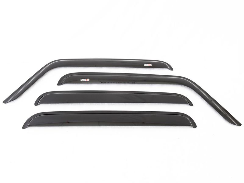 Let the fresh air in and keep the rain out with these side window air/rain deflectors from Rugged Ridge. Featuring a durable scratch resistant 2mm thick smoked acrylic and a low profile design for a precise fit, these deflectors offer a stylish look for the exterior of your JK while helping to channel airflow over your vehicle to reduce wind noise when the windows are open, for a quiet and comfortable ride.