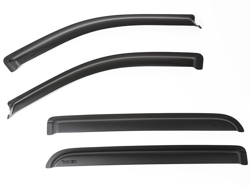Let the fresh air in and keep the rain out with this window visor kit from Rugged Ridge. These visors feature a durable scratch resistant 2mm thick acrylic and a low profile design for a precise fit. These matte black visors offer a stylish look for the exterior of your vehicle while helping to channel airflow over your vehicle to reduce wind noise when the windows are open, for a quiet and comfortable ride. Attaches using double-sided automotive grade adhesive tape.
